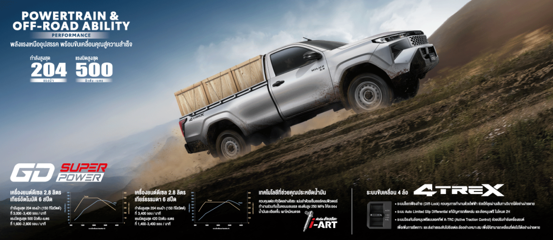 - มาพร้อมกับเครื่องยนต์ GD SUPER POWER ขนาด 2.8 ลิตร มาพร้อมทั้งพลัง และความประหยัดที่ดีขึ้น ตอบสนองความต้องการและการใช้งานของลูกค้าที่ต้องการรถกระบะที่เปี่ยมไปด้วยขุมพลัง