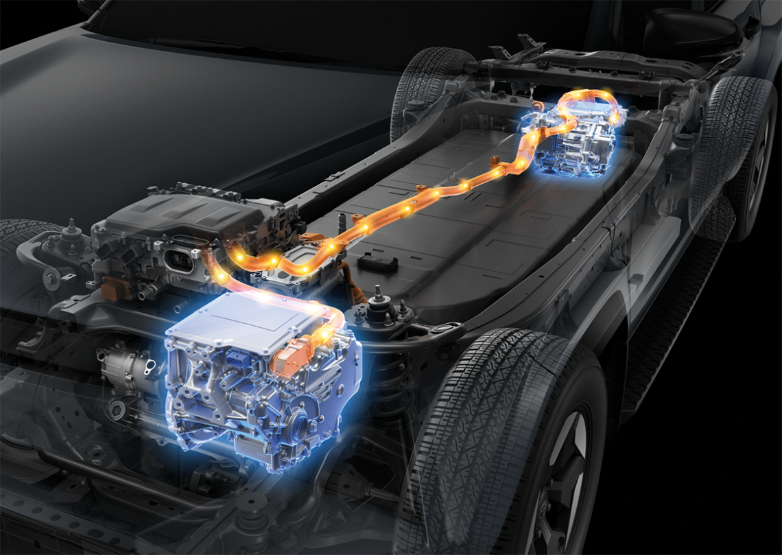 - ระบบ Dual Motor มอเตอร์คู่ ขับเคลื่อน 4 ล้อ แบบ All-Wheel Drive ให้กำลังรวมสูงสุด 196 แรงม้า (144 กิโลวัตต์)