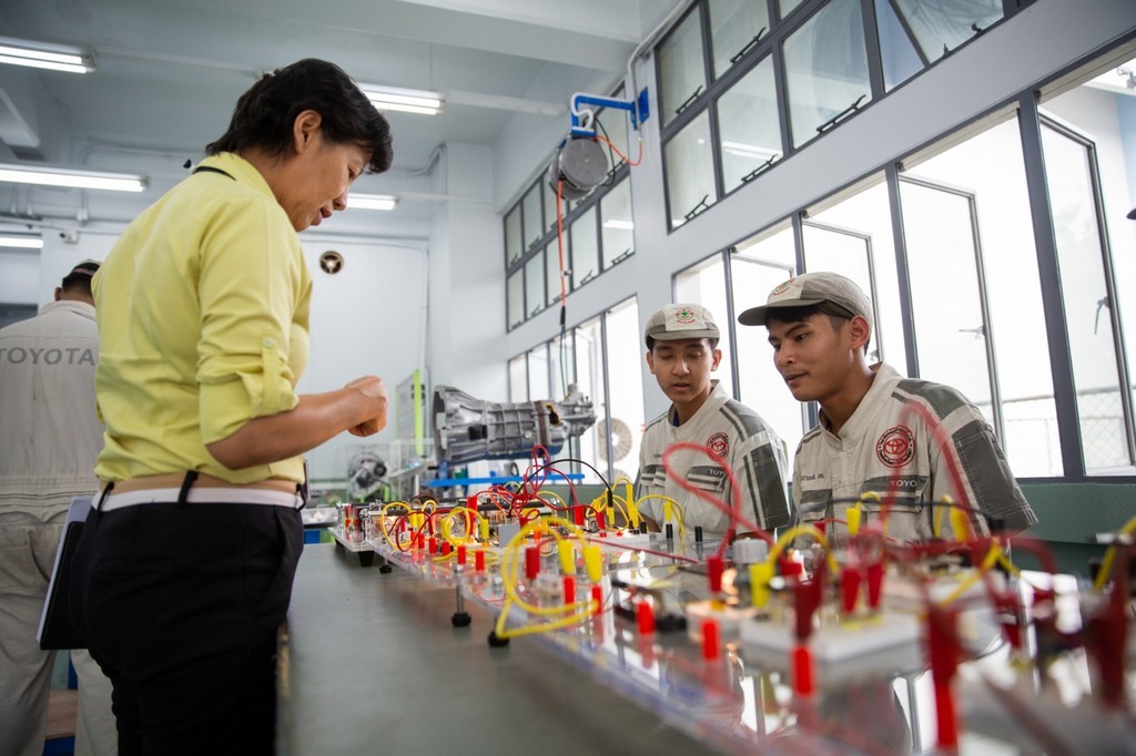 วิทยาลัยเทคโนโลยียานยนต์โตโยต้า เริ่มเปิดดำเนินการเรียนการสอนมาตั้งแต่ปีพ.ศ.2541สำหรับนักศึกษาระดับ ปวส. ในสาขาเทคนิคยานยนต์ สาขาธุรกิจการบริการยานยนต์ และสาขาเทคนิคซ่อมตัวถังและสีรถยนต์ เพื่อผลิตบุคลากรคุณภาพให้กับศูนย์บริการของผู้แทนจำหน่ายโตโยต้าทั่วประเทศ โดยฝึกสอนให้ความรู้เกี่ยวกับเทคโนโลยียานยนต์ของโตโยต้า เสริมด้วยความรู้ด้านการบริหารจัดการแบบโตโยต้า เพื่อให้มีทักษะกระบวนความคิดและการจัดการที่มีประสิทธิภาพมากยิ่งขึ้น โดยปัจจุบันมีนักศึกษาที่จบจากวิทยาลัยเทคโนโลยียานยนต์โตโยต้ารวมทั้งสิ้นกว่า 3,700 คน สร้างบุคลากรสายอาชีพช่างเทคนิคยานยนต์จำนวนมากให้กับอุตสาหกรรมยานยนต์ของประเทศไทย