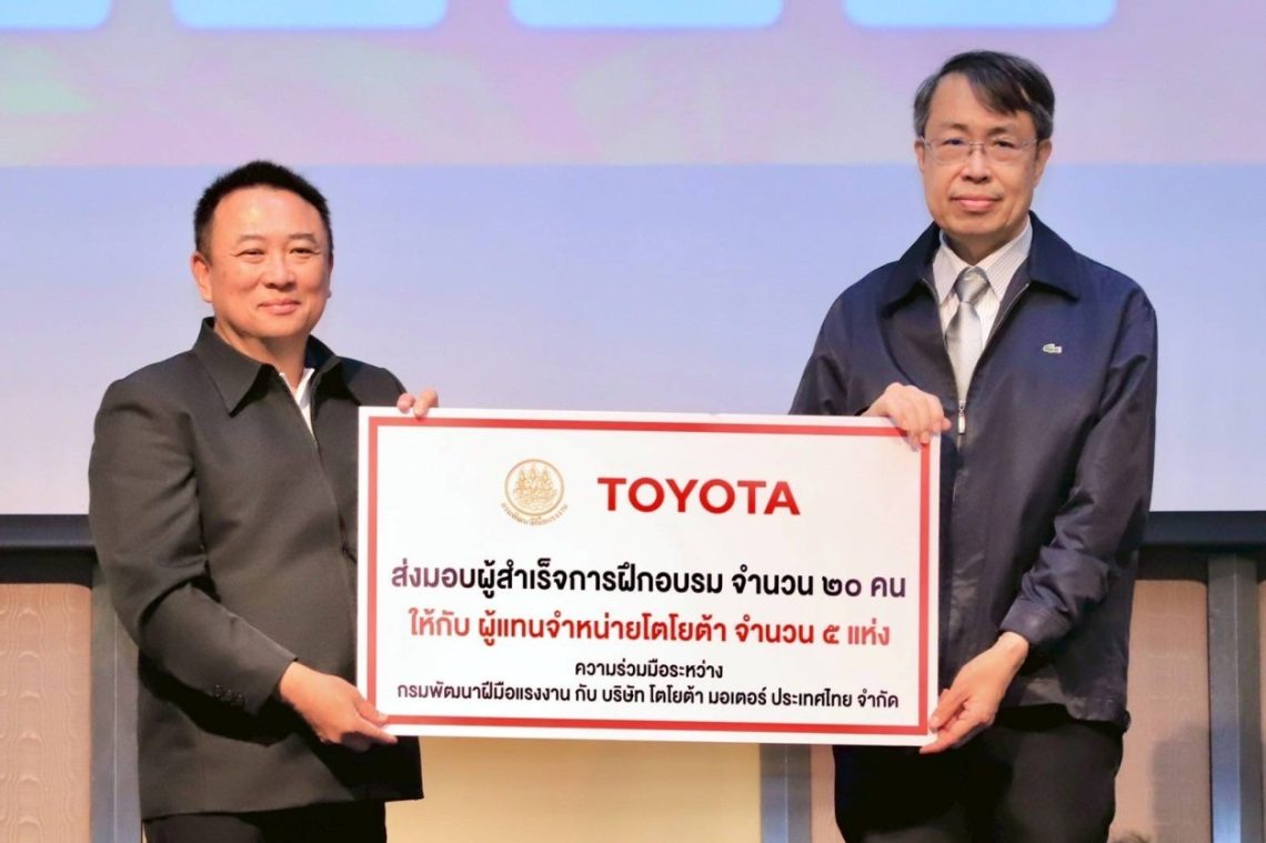 บริษัท โตโยต้า มอเตอร์ ประเทศไทย จำกัด โดยศูนย์การศึกษาและฝึกอบรมโตโยต้า ได้เข้าร่วมพิธีส่งมอบผู้สำเร็จการฝึกอบรม หลักสูตรช่างซ่อมตัวถังและพ่นสีรถยนต์ UBISD Model เมื่อวันที่ 29 มิถุนายน 2568 โดยมี นายเดชา พฤกษ์พัฒนรักษ์ อธิบดีกรมพัฒนาฝีมือแรงงาน เป็นประธานในพิธี โดยได้ส่งมอบผู้สำเร็จการฝึกอบรมในหลักสูตร ช่างซ่อมตัวถังและสีรถยนต์ และได้รับการรับรองมาตรฐานช่างตัวถังและสีรถยนต์ ระดับ1 โตโยต้า จำนวน 20 คน เข้าทำงานกับผู้แทนจำหน่ายโตโยต้า 5 แห่ง ภายใต้โครงการเพิ่มทักษะด้านอาชีพแก่นักเรียนที่ไม่ได้ศึกษาต่อหลังจบการศึกษาภาคบังคับ