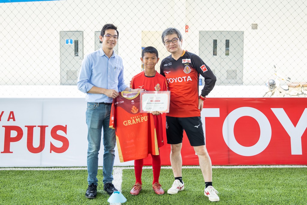 มร.โคคิ โคนิชิ ประธานสโมสรนาโกย่า แกรมปัส เอต พร้อมด้วยนายชยุต บุณยวาทย์ รองผู้อำนวยการฝ่ายการตลาดรถเพื่อการพาณิชย์ บริษัท โตโยต้า มอเตอร์ ประเทศไทย จำกัด ร่วมมอบใบประกาศเกียรติคุณพร้อมของที่ระลึกแก่นักฟุตบอลเยาวชนไทย 24 คน ที่ผ่านการคัดเลือกจากเยาวชนทั่วประเทศกว่า 7,000 คน ในโครงการ โตโยต้า จูเนียร์ ฟุตบอล คลินิก 2019 ในการร่วมฝึกทักษะฟุตบอลกับคณะผู้ฝึกสอนชาวญี่ปุ่นจากศูนย์ฝึกฟุตบอลของสโมสร นาโกย่า แกรมปัส เอต ตั้งแต่วันที่ 21 – 26 มกราคม 2563 รวม 6 วัน ณ ลานสนามฟุตบอล สนามกอล์ฟ พัฒนา กอล์ฟ คลับ แอนด์ รีสอร์ท
