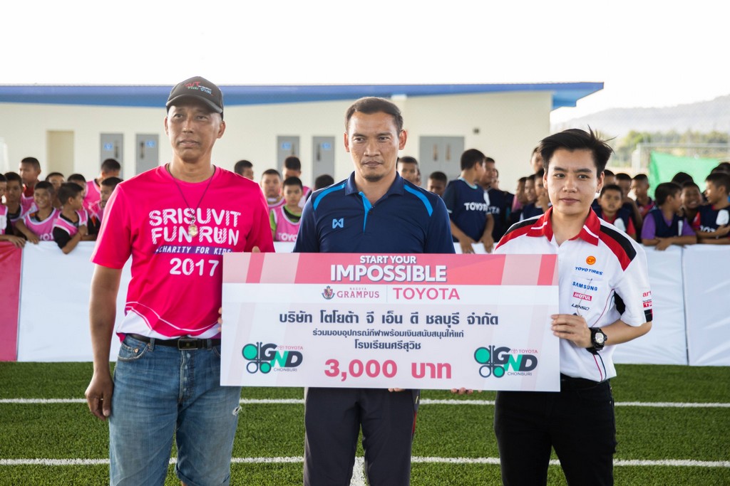 ในการนี้ ผู้แทนจำหน่ายโตโยต้าในเขตจังหวัดชลบุรียังได้นำเยาวชนไทย อายุระหว่าง 9 – 12 ปี จำนวน 140 คน เข้าร่วมการฝึกทักษะฟุตบอลเพื่อพัฒนาทักษะพื้นฐานในวันเดียวกัน พร้อมร่วมมอบอุปกรณ์กีฬาให้กับโรงเรียนในพื้นที่หลังจากเสร็จสิ้นกิจกรรมอีกด้วย
