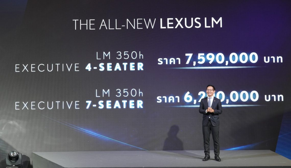 “All-New LEXUS LM จะมาสร้างประวัติศาสตร์ครั้งสำคัญของเลกซัสในประเทศไทย รถรุ่นนี้ได้รับการตอบรับอย่างล้นหลาม และเป็นรถรุ่นหลักที่มียอดขายลำดับต้นๆ ในกลุ่มรถ Minivan ระดับหรู โดย LM ย่อมาจาก “Luxury Mover” สื่อถึงความตั้งใจในการพัฒนารถรุ่นนี้เพื่อตอบสนองความต้องการใช้งานของลูกค้าที่ต้องการใช้รถ MPV แบบมีคนขับ วันนี้เรามีความยินดีที่จะแนะนำ “All-New LEXUS LM” ด้วยการออกแบบของเลกซัสเจเนอเรชันใหม่ทำให้มีเอกลักษณ์เฉพาะ นำเสนอทั้งความคล่องแคล่ว ความหรูหรา และความสง่างาม พร้อมที่จะพาทุกท่านไปสู่อีกขั้นของ “Omotenashi” สร้างสภาพแวดล้อมอันผ่อนคลาย ราวกับว่าอยู่ภายในห้องสวีทของโรงแรมสุดหรู หรือห้องทำงานเคลื่อนที่ ยิ่งไปกว่านั้น เอกลักษณ์การขับขี่เฉพาะแบบเลกซัส ยังได้ถูกผสานเข้ากับ The All-New LM นี้ ผ่านพลวัตขับเคลื่อนอันทรงพลังดั่งใจผู้ขับขี่ ความรู้สึกมั่นใจในความปลอดภัย และความพิถีพิถัน ที่ถ่ายทอดไปยังผู้โดยสารตอนหลัง ขอเชิญท่านร่วมสัมผัส All-New LM ที่จะมอบสภาพแวดล้อมที่เอื้อต่อการผ่อนคลายทั้งร่างกาย และจิตใจ และพื้นที่สำหรับแรงบันดาลใจเชิงบวก ทั้งด้านความคิด และการกระทำให้กับทุกท่าน และขอให้เพลิดเพลินไปกับ “Omotenashi” ที่เราตั้งใจมอบให้กับทุกท่านในวันนี้” มร.ยามาชิตะ กล่าวเปิดตัวเลกซัส LM ใหม่ อย่างเป็นทางการด้วยความภาคภูมิใจ