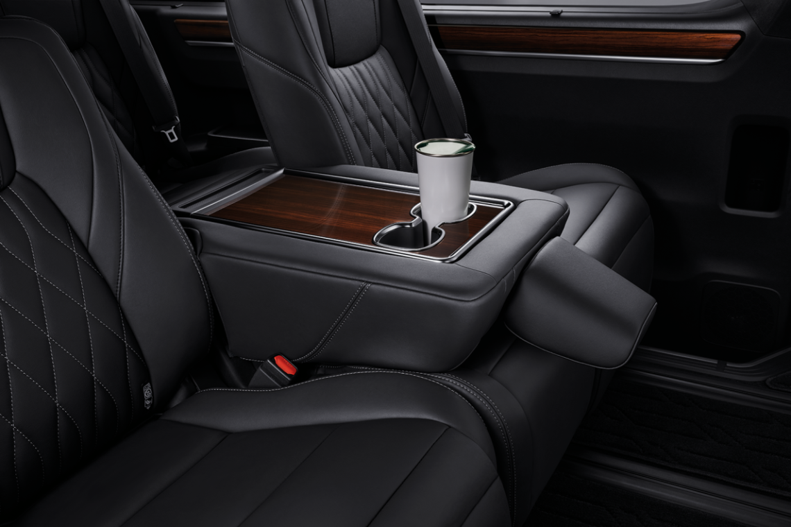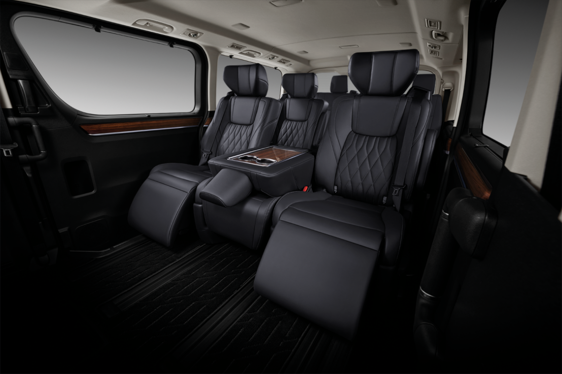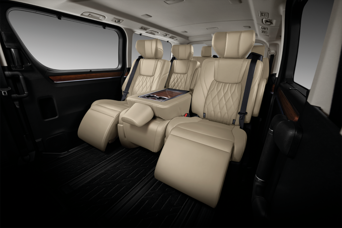 • ส่วนเบาะผู้โดยสารด้านหลังในแถวที่ 1 – 2 จะเป็นที่นั่งแบบ Captain Seats  4 ที่นั่ง และสามารถปรับได้ 4 ทิศทาง พร้อมหัวหมอนแบบ Butterfly ที่รองน่อง และระบบบริหารหลังแบบไฟฟ้า (ในรุ่น Grande) ทั้งนี้ในแถวที่ 1 ยังมาพร้อมกับเบาะผู้โดยสารตำแหน่งกลางและหัวหมอน ที่สามารถพับเป็นที่วางแขน และที่วางแก้วน้ำ ทำให้การเดินทางเป็นไปอย่างสะดวกสบาย