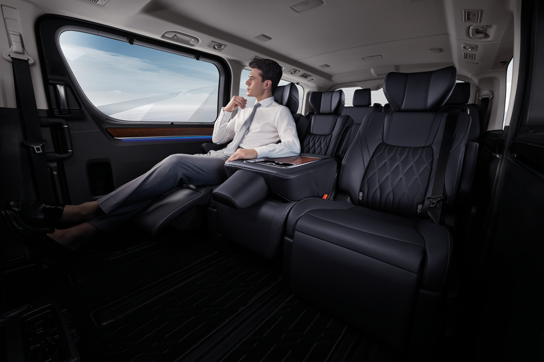 2. ความสะดวกสบายในการโดยสาร – ที่ออกแบบมาให้ตรงตามความคาดหวังของรถระดับพรีเมียม ทั้งด้านหน้าและด้านหลัง โดยเน้นความสะดวกสบาย ซึ่งออกแบบผังที่นั่งเป็นแบบ 2-3-2-4 เพื่อตอบสนองลูกค้าทั้งกลุ่มผู้บริหารและกลุ่มครอบครัว