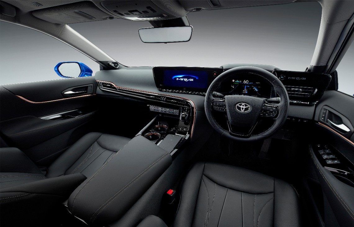 ภายในห้องโดยสารเน้นความเรียบง่าย ผสมผสานด้วยความทันสมัย เพื่อสร้างความรู้สึกอบอุ่น และผ่อนคลาย ด้วยการเลือกใช้วัสดุ ซึ่งรวมถึงการออกแบบที่รวมความล้ำสมัยเข้าไว้ด้วยกัน จากบริเวณแผงควบคุมบริเวณคอนโซลหน้า ซึ่งเชื่อมต่อเข้าด้วยกันระหว่างหน้าจอขนาด 12.3 นิ้ว และแผงหน้าปัดที่รอบล้อมคนขับ อีกทั้งการดีไซน์ระบบเซลล์พลังานเชื้อเพลิง ภายใต้สถาปัตยกรรมยานยนต์ใหม่ TNGA ยังเอื้ออำนวยให้มีที่นั่ง ซึ่งรองรับผู้ขับขี่ และผู้โดยสารได้เพิ่มขึ้นเป็น 5 ที่นั่ง จากรุ่นปัจจุบันที่มีเพียง 4 ตำแหน่ง