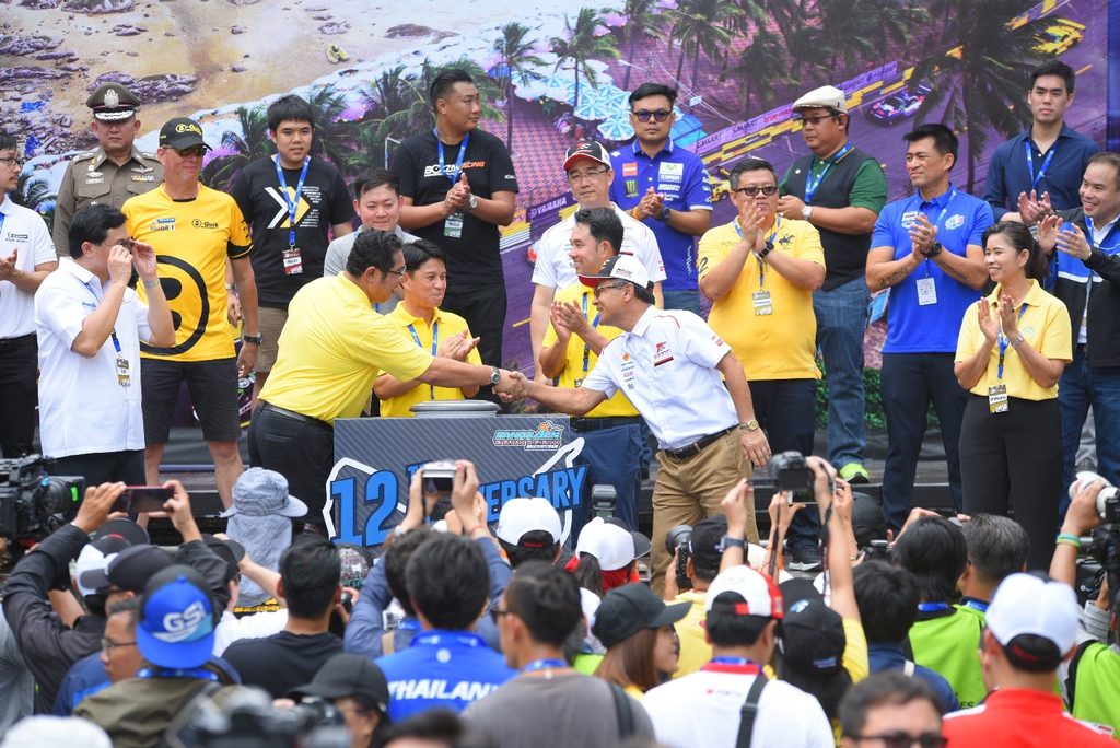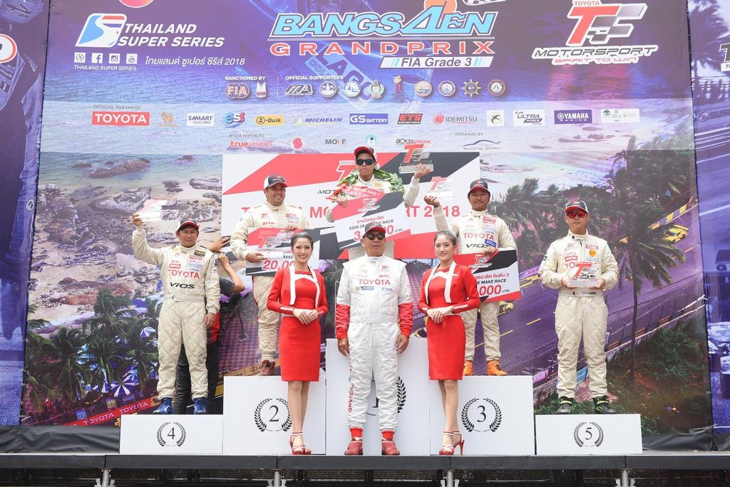 มร.มิจิโนบุ ซึงาตะ เจ้าหน้าที่บริหาร บริษัท โตโยต้า มอเตอร์ คอร์ปอเรชั่น และ กรรมการผู้จัดการใหญ่ บริษัท โตโยต้า มอเตอร์ ประเทศไทย จำกัด พร้อมด้วย นายอิทธิพล คุณปลื้ม ผู้ช่วยรัฐมนตรีว่าการกระทรวงการท่องเที่ยวและกีฬา นายสนธยา คุณปลื้ม ประธานจัดการแข่งขัน Bangsaen Grandprix 2018 และ นายภัครธรณ์ เทียนไชย ผู้ว่าราชการจังหวัดชลบุรีร่วมเปิดการแข่งขันรถยนต์ทางเรียบ “โตโยต้า มอเตอร์สปอร์ต 2018” สนามที่ 3 ซึ่งเข้าร่วมรายการแข่งขันระดับประเทศ รายการ “บางแสน กรังด์ปรีซ์ 2018” เมื่อวันที่ 14 กรกฏาคม 2561 ณ ริมหาดบางแสน จังหวัดชลบุรี