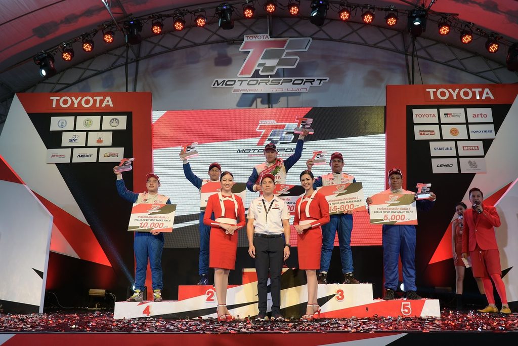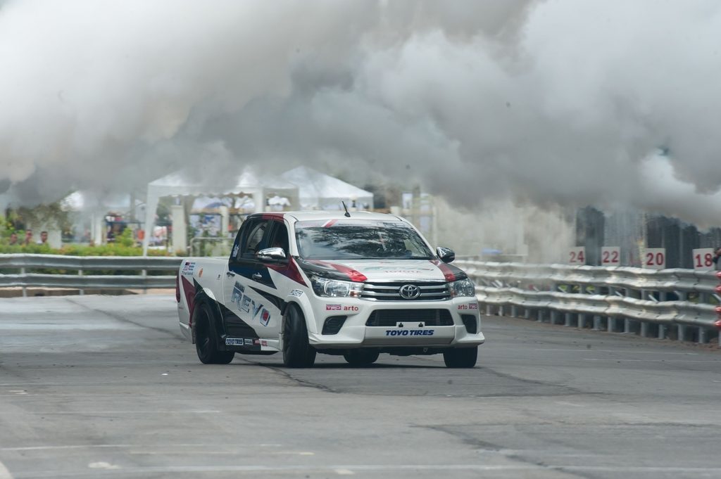 ปิดท้ายด้วยรุ่นไฮไลท์ การแข่งขันรถกระบะทางเรียบ “ไฮลักซ์ รีโว่ วันเมคเรซ” กับเครื่องยนต์ 2,400 ซีซี บทพิสูจน์ของกระบะสายพันธุ์แกร่ง กับช่วงล่างที่หนึบและสมรรถนะที่แรงสุดขีด แข่งขันกัน 22 รอบสนาม เริ่มต้นการแข่งขันหลังจากสัญญาณไฟออกสตาร์ทดับลง เหล่านักแข่งก็ต่างเร่งเครื่องเพื่อแย่งชิงไลน์ในการเข้าโค้งแรก ด้วยความหนึบจากช่วงล่างของไฮลักซ์ รีโว่ ทำให้ทุกคนผ่านเข้าไลน์ได้อย่างยอดเยี่ยม สนามนี้ อันดับ 1 ตกเป็นของ “เอกสิทธิ์ นามแสงผา” ตามมาด้วย “โสภณ ภุมรินทร์” ในอันดับที่ 2 และ “กัมปนาท แก้วถังเมือง” ในอันดับ 3