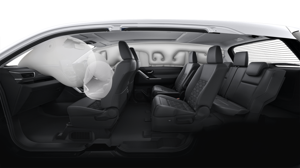 • ถุงลมเสริมความปลอดภัย 6 ตําแหน่ง คู่หน้า / ด้านข้างคู่หน้า / ม่านด้านข้าง