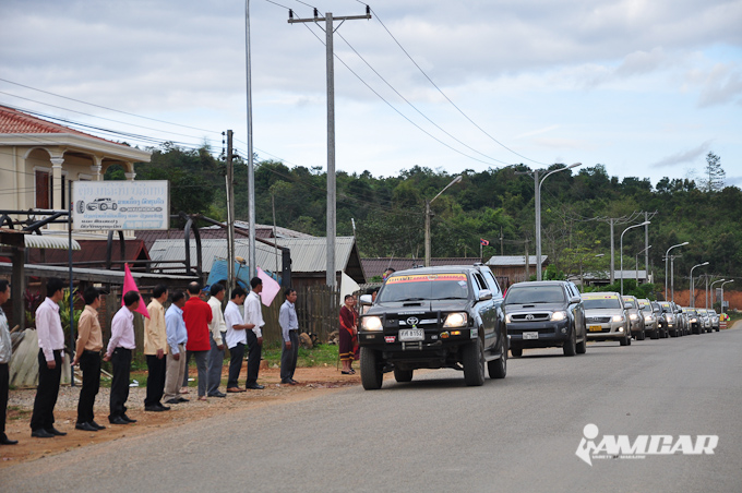 วันอาทิตย์ที่ 24 พฤศจิกายน ทุกๆ ท่านในคาราวาน 40 คัน ตั้งขบวนที่หน้าโรงแรม เพื่อมุ่งหน้าไป 32 กม. ถึง วัดสีพม เมืองคูน ภาพความประทับใจแรกที่ผมเห็น คือ ขบวนคาราวานที่มีแต่รถ TOYOTA กว่า 40 คัน วิ่งเรียงลัดเลาะไหล่เขาไปอย่างช้าๆ ซึ่งมันงดงามในความรู้สึกผมมาก และทุกท่านที่อยู่ในรถ ก็มีทั้งเชื้อชาติไทยและเชื้อชาติลาว แต่ทุกคนต่างมีจุดหมายเดียวกันคือ “ทำดี” ตลอดระยะทาง 32 กม.สุดท้ายก่อนถึงวัด มีชาวบ้านออกมาร่วมทำบุญฝากของ ฝากเงิน ฝากอาหารไปถวายวัดตลอดเส้นทาง