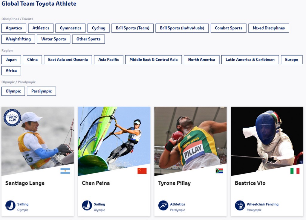 โตโยต้า มอเตอร์ คอร์ปอเรชั่น (โตโยต้า) ซึ่งเป็นพันธมิตรระดับโลกของการแข่งขันโอลิมปิกและพาราลิมปิก ประกาศในวันนี้ว่าทางบริษัทได้เปิดตัวเว็บเพจที่จัดทำขึ้นมาโดยเฉพาะบนเว็บไซต์อย่างเป็นทางการของโตโยต้า ประเทศญี่ปุ่น เพื่อสนับสนุนและเผยแพร่เรื่องราวและกิจกรรมต่างๆ ของนักกีฬาประมาณ 240 คน* จาก 43 ประเทศทั่วโลก โดยนักกีฬาเหล่านี้จะได้รับการขนานนามเป็น “นักกีฬาทีมโตโยต้าระดับโลก” (Global Team Toyota Athletes) จากการที่พวกเขาเป็นตัวแทนที่แสดงออกถึงจิตวิญญาณแห่ง “ความท้าทาย” และ “การพัฒนาปรับปรุงอย่างต่อเนื่อง” เพื่อผลักดันตัวเองจนได้รับคัดเลือกเป็นนักกีฬาเข้าชิงชัยในการแข่งขันกีฬาโอลิมปิกและพาราลิมปิก โตเกียว 2020