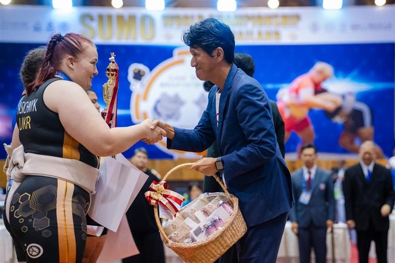 มร.คิมิโอ มินามิ ผู้อำนวยการ บริษัท โตโยต้า มอเตอร์ คอร์ปอเรชั่น และ มร.โนริอากิ ยามาชิตะ กรรมการผู้จัดการใหญ่ บริษัท โตโยต้า มอเตอร์ ประเทศไทย จำกัด พร้อมด้วยคณะผู้บริหารเข้าร่วมเป็นเกียรติในพิธีมอบรางวัลการแข่งขันซูโม่ชิงแชมป์โลก ประจำปี 2568 ซึ่งจัดขึ้นระหว่างวันที่ 13 – 14 กันยายน 2568 ณ อาคารนันทนาการ มหาวิทยาลัยรังสิต จังหวัดปทุมธานี โดยการแข่งขันในครั้งนี้ถือเป็นครั้งแรกที่ประเทศไทยได้รับเกียรติให้เป็นเจ้าภาพจัดการแข่งขันระดับโลกดังกล่าว