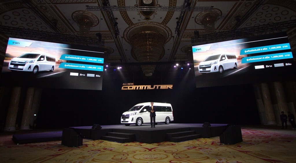 มร.มิจิโนบุ ซึงาตะ กรรมการผู้จัดการใหญ่ บริษัท โตโยต้า มอเตอร์ ประเทศไทย จำกัด มร. ทาคุโอะ อิชิกาวะ หัวหน้าวิศวกร บริษัท โตโยต้า มอเตอร์ คอร์ปอเรชั่น และนายวุฒิกร สุริยะฉันทนานนท์ รองกรรมการผู้จัดการใหญ่ บริษัท โตโยต้า มอเตอร์ ประเทศไทย จำกัด ร่วมแถลงข่าวแนะนำรถตู้ “คอมมิวเตอร์” ใหม่ เมื่อวันที่ 11 มิถุนายน 2562 ณ ห้องรอยัล จูบิลี่ อิมแพค เมืองทองธานี