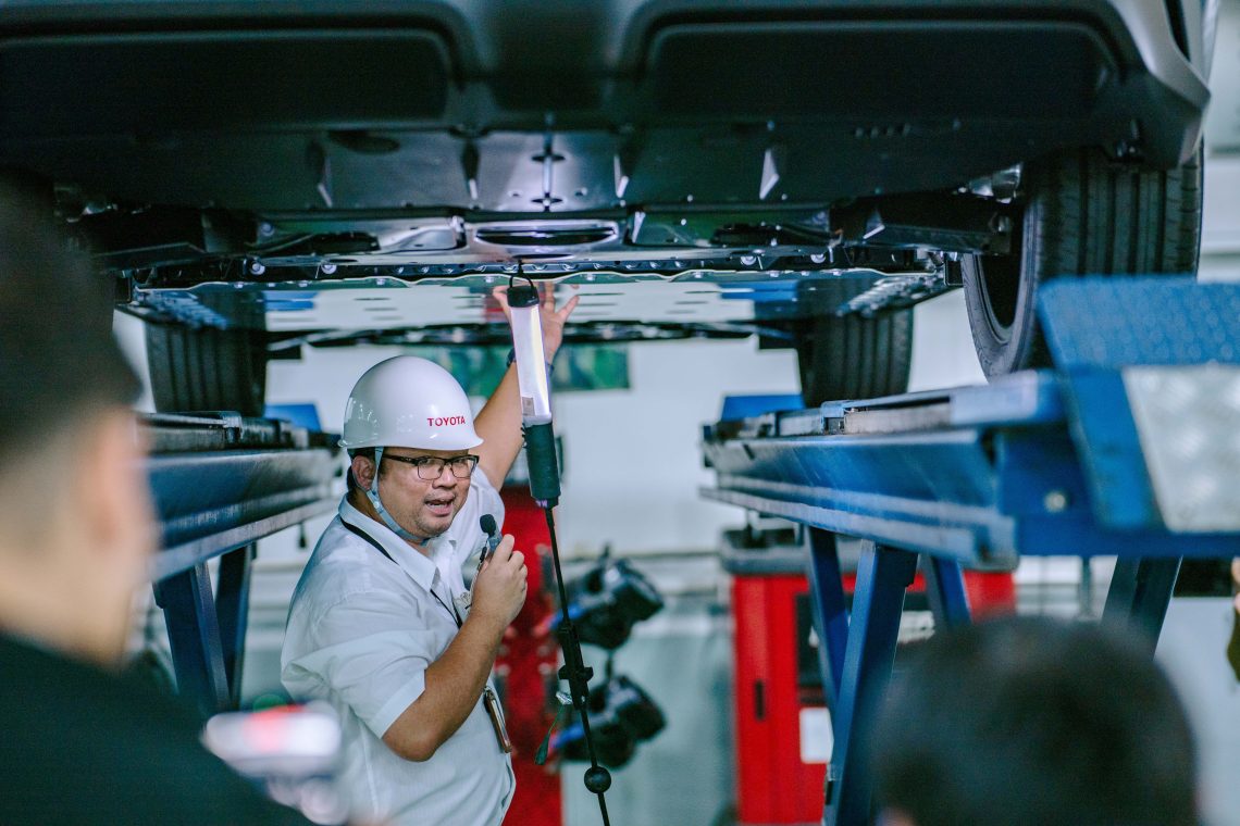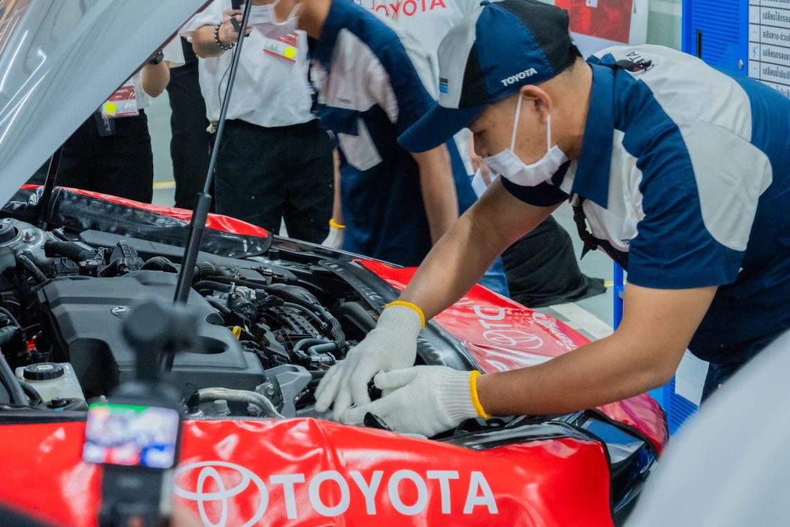 ที่ศูนย์บริการโตโยต้า ช่างทุกคนต้องผ่านการฝึกอบรมจากศูนย์การศึกษาและฝึกอบรมโตโยต้าตามมาตรฐานญี่ปุ่น พร้อมการพัฒนาความรู้อย่างต่อเนื่อง เพื่อรองรับเทคโนโลยียานยนต์ใหม่ๆ เช่น HEV และ EV