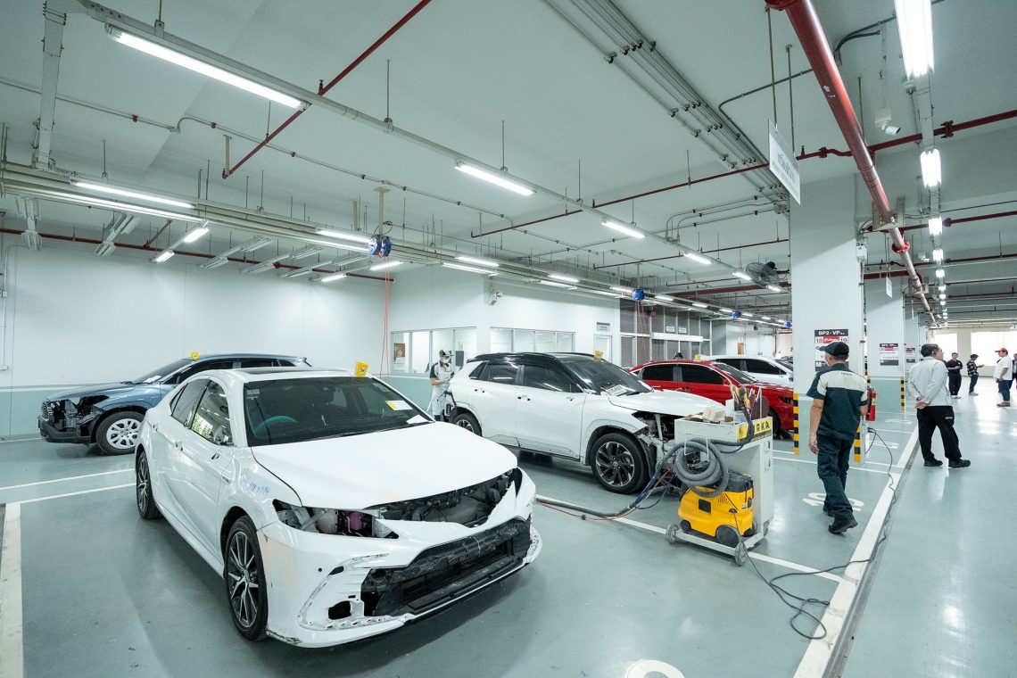สำหรับงานซ่อมตัวถังและสี มีการใช้สีน้ำสูตรเดียวกับโรงงาน ที่เป็นมิตรต่อสิ่งแวดล้อม รับประกันอะไหล่แท้ พร้อมด้วยเทคโนโลยีการซ่อมตัวถังที่มีความแม่นยำสูง เพื่อคืนสภาพรถให้กลับมามีสภาพใกล้เคียงเหมือนใหม่ทั้งรูปลักษณ์และความปลอดภัย เพื่อเพิ่มความมั่นใจให้ลูกค้าทุกครั้งที่นำรถเข้ารับบริการ ทางโตโยต้ามีเป้าหมายการทำงานร่วมกับประกันภัยในการอนุมัติงานซ่อมแบบออนไลน์เพื่อนำมาซึ่งความรวดเร็ว รวมถึงมีการยืนยันกับลูกค้าก่อนการซ่อมทุกครั้ง เช่นเดียวกับมาตรฐานการประเมินราคา ที่ทางโตโยต้ามีการนำพื้นที่ความเสียหาย ความยากง่ายของการซ่อม มาเป็นส่วนสำคัญในการคำนวณค่าใช้จ่าย ทำให้ทุกศูนย์บริการมีมารตรฐานเดียวกันทั่วประเทศ