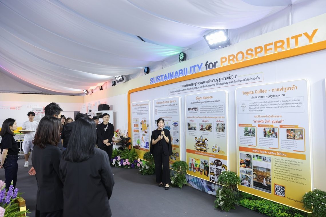 - ด้านเศรษฐกิจ นำเสนอภารกิจในการยกระดับธุรกิจฐานราก ผ่านโครงการ โตโยต้า ธุรกิจชุมชนพัฒน์ ที่ส่งต่อองค์ความรู้ของโตโยต้าสู่ธุรกิจชุมชน รวมถึง Togeta Solutions ที่เน้นการแก้ปัญหาให้ผู้ประกอบการไทย (SMEs) และ Haikoon (ให้คุณ) ที่มุ่งเพิ่มโอกาสให้สินค้าชุมชน พร้อมสนับสนุนเกษตรกรไทยอย่างยั่งยืน ผ่าน Togeta Coffee และ โรงสีข้าวรัชมงคล