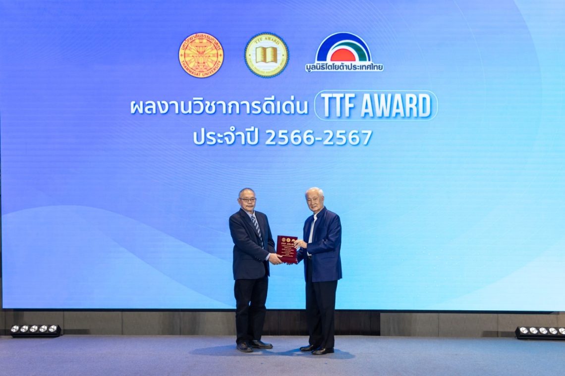 มูลนิธิโตโยต้าประเทศไทย ร่วมกับ มหาวิทยาลัยธรรมศาสตร์ ประกาศเกียรติคุณ ผลงานวิชาการดีเด่น รางวัล TTF Award ประจำปี 2566-2567